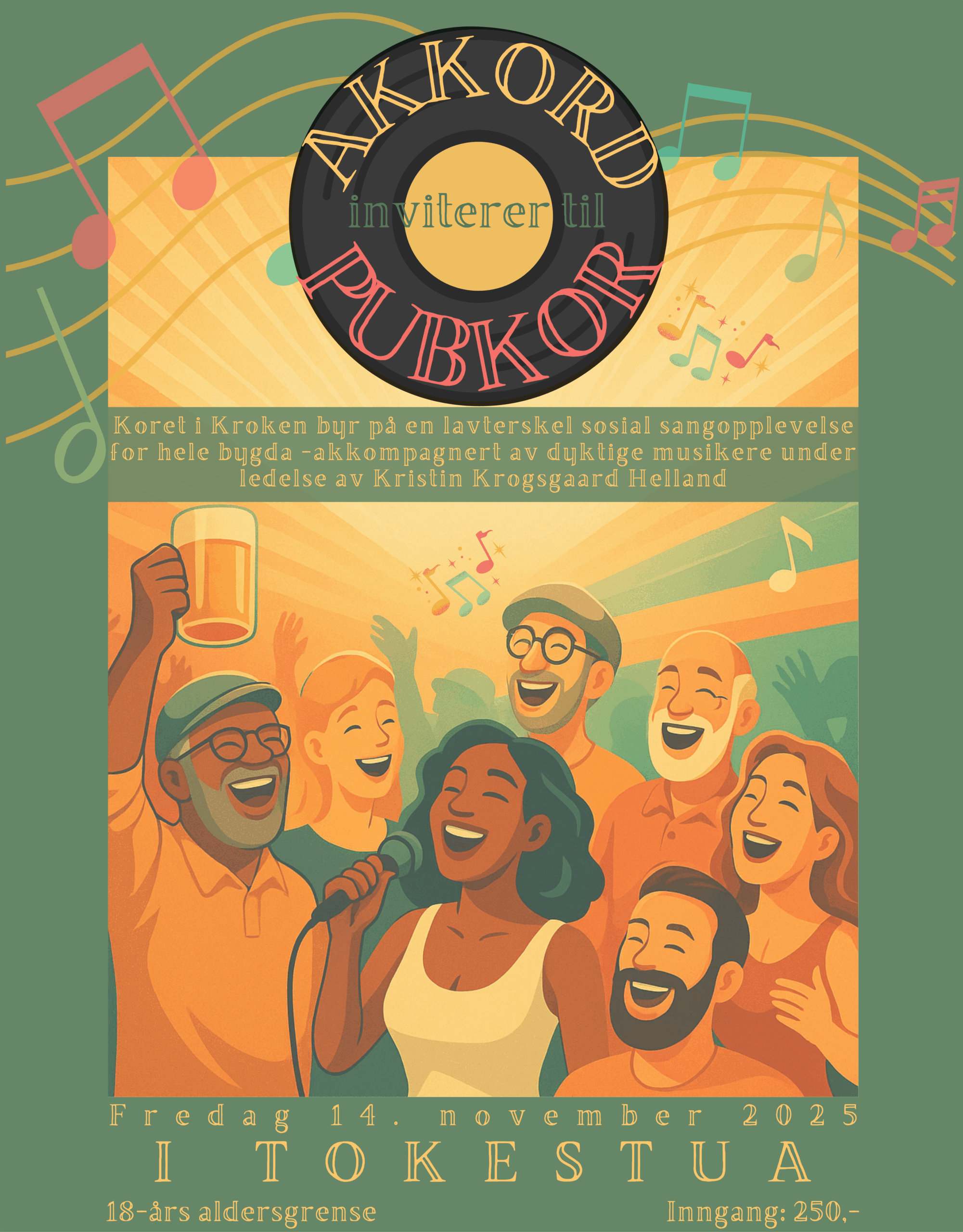 Konseptet er enkelt: vi inviterer publikum til en kveld med herlig sang i Tokestua. Under ledelse av dirigent Kristin Helland lærer vi oss to-tre sanger i løpet av kvelden.
